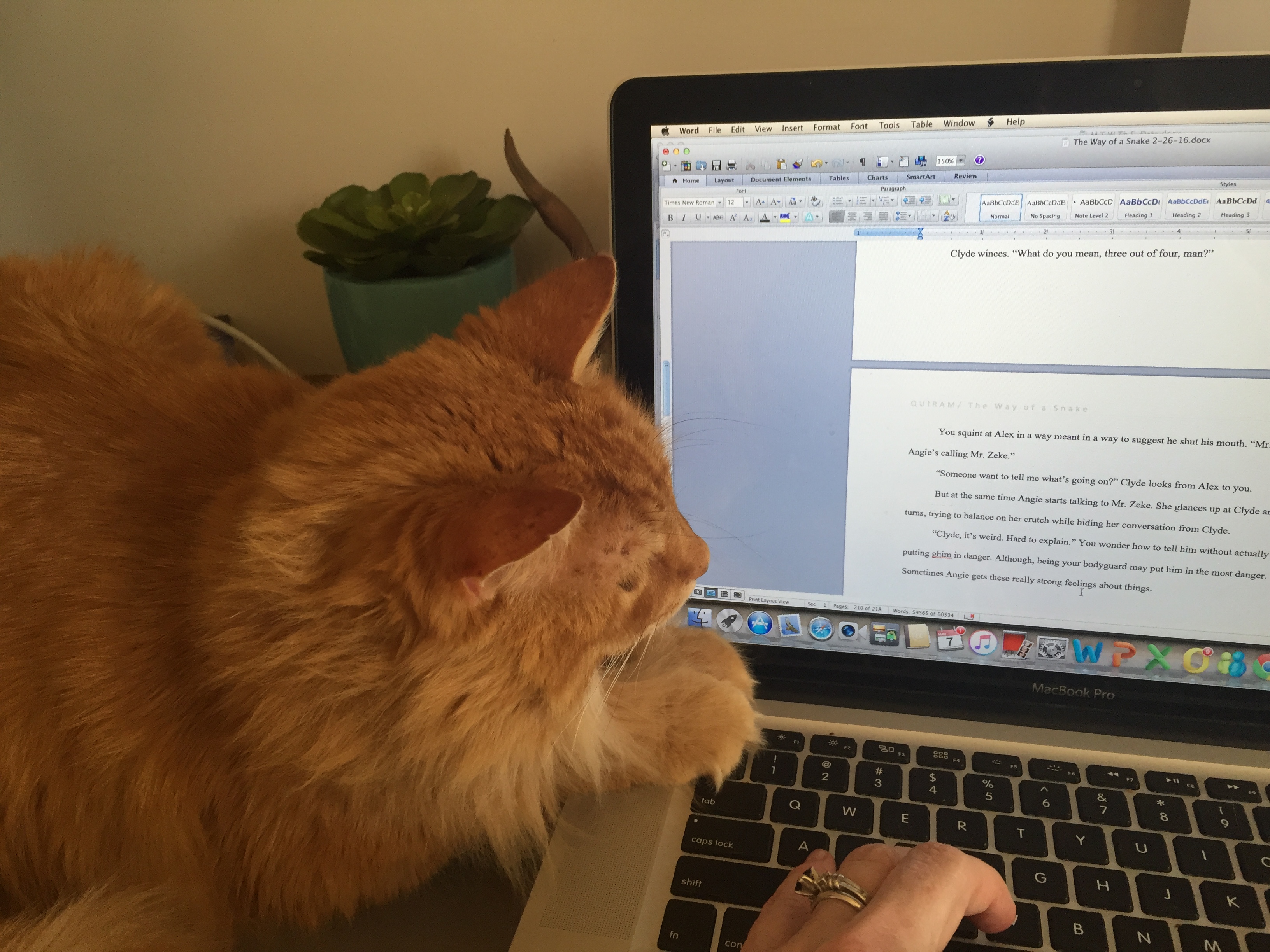 Tim and I currently live in the DC area with our naughty cat 😼 Boris Badanov, who, as you can see in the picture on the right, likes to be the first to critique my work.